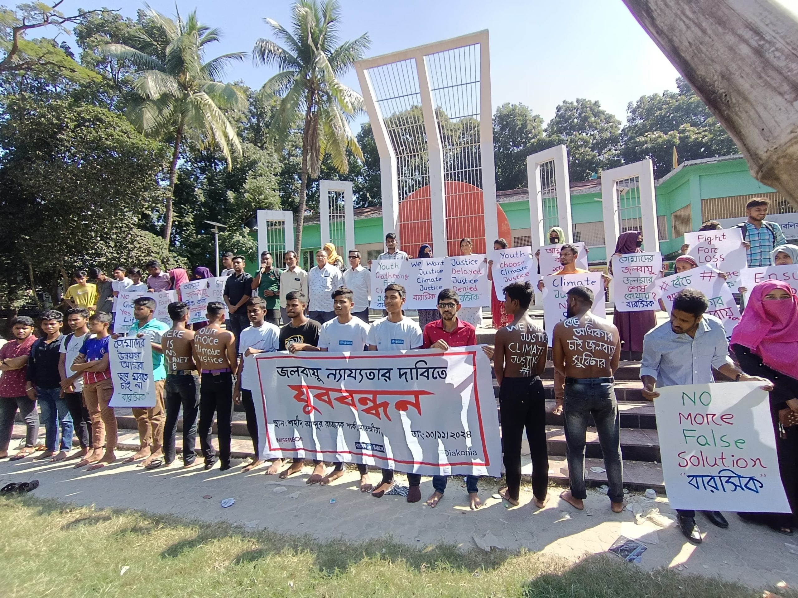 এই বন্ধনে অংশ নিয়ে তরুণরা ‘উপক‚লের চিৎকার, জলবায়ু সুবিচার’, ‘জলবায়ুর ন্যায় বিচার এখনই দরকার’, ‘এক বিশ্ব, একটি সুযোগ’, ‘জলবায়ু উষ্ণতা থেকে আমরা বাঁচতে চাই’, ‘তোমাদের জলবায়ু জলসার শেষ কোথায়?’, ‘আমাদের দাবি কি বাকু পৌঁছাবে’, ‘তোমাদের যুদ্ধ বন্ধ করো জলবায়ু ঠিক কর’, ‘বেঁচে থাকার অধিকার জলবায়ুর সুবিচার’, ‘পরিবেশ ধবংস করে উন্নয়ন চাই না’, ‘নগর পুড়লে দেবালয় এড়ায় না’, ‘আর নয় মিথ্যা আশ্বাস’ প্রভৃতি স্লোগান দেয়।