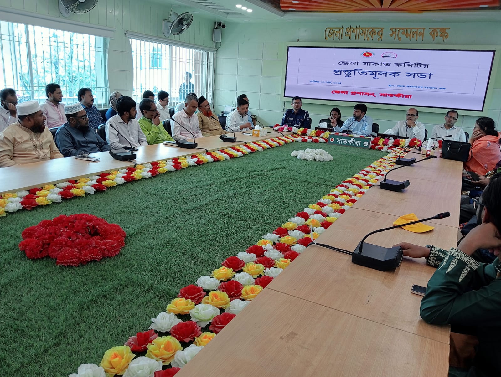 সাতক্ষীরা জেলা প্রশাসক মোস্তাক আহমেদ এর সভাপতিত্বে প্রস্তুতিমূলক সভায় উপস্থিত ছিলেন অতিরিক্ত জেলা প্রশাসক (সার্বিক) বিষ্ণুপদ পাল,অতিরিক্ত জেলা প্রশাসক (এলডিডি) মাশরুবা ফেরদৌস , অতিরিক্ত পুলিশ সুপার ইমরান হোসেন, বাংলাদেশ জামায়াতে ইসলামী সাতক্ষীরা জেলার আমির উপাধাক্ষ শহীদুল ইসলাম মুকুল, সেক্রেটারি মাওলানা আজিজুর রহমান, জেলা বিএনপির সদস্য সচিব আবু জাহিদ ডাবলু, মাধ্যমিক শিক্ষা অফিসার মোঃ আবুল খায়ের, ইসলামিক ফাউন্ডেশন সাতক্ষীরার ডিডি মোঃ মেহেদী হাসান, জেলা তথ্য অফিসার মো. জাহারুল ইসলাম, সাতক্ষীরা প্রেসক্লাবের সাধারণ সম্পাদক মো. আব্দুল বারী, সাতক্ষীরা সরকারি উচ্চ বিদ্যালয়ের প্রধান শিক্ষক আমিনুল ইসলাম টুকু, সাতক্ষীরা সরকারি বালিকা উচ্চ বিদ্যালয়ের ভারপ্রাপ্ত প্রধান শিক্ষক মো. আনিছুর রহমান, সরকারি উচ্চ বিদ্যালয় সরকারি প্রধান শিক্ষক সিরাজুল ইসলাম, সাতক্ষীরা আলিয়া কামিল মাদ্রাসার ভারপ্রাপ্ত অধ্যক্ষ মুফতি আখতারুজ্জামান, জেল সুপার মোহাম্মদ এনায়েত উল্ল্যা,র্যাব -৬ এর উপ সহকারী পরিচালক রুহুল আমিন, শহর জামাতের সেক্রেটারি মোঃ খোরশেদ আলম, বাংলাদেশ ইসলামী ছাত্রশিবির সাতক্ষীরা জেলা সেক্রেটারি মোঃ জুবায়ের হোসেন, বৈষম্য বিরোধী ছাত্র আন্দোলন সাতক্ষীরার আহ্বায়ক আরাফাত হোসেন,সদস্য সচিব সোহায়েল মাহাদি, মুখপত্র মোহিনী পারভীনসহ জেলা প্রশাসনের কর্মকর্তা ও বিভিন্ন সরকারি বেসরকারি প্রতিষ্ঠানের কর্মকর্তারা উপস্থিত ছিলেন।