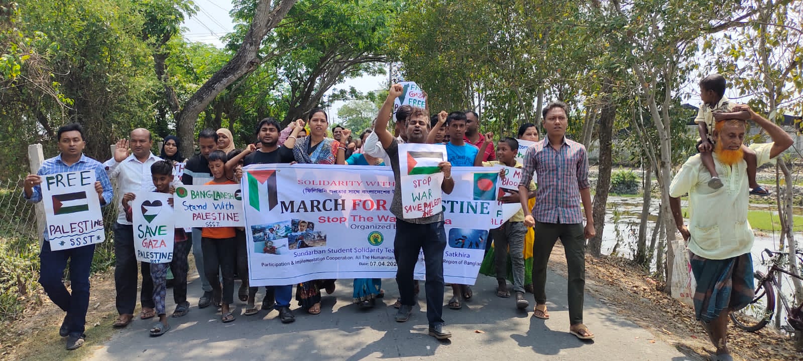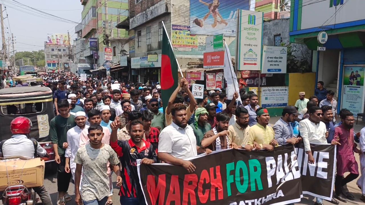 বক্তারা বলেন, গাজায় মুসলিম ভাই-বোনদের ওপর ইসরায়েলি হামলা একটি মানবতাবিরোধী অপরাধ। বিশ্ব স¤প্রদায়ের উচিত এখনই নির্দিষ্ট ও কার্যকর ভূমিকা রাখা। সামর্থ্য থাকলে সাতক্ষীরার ২০ হাজার ছাত্র আজই ফিলিস্তিনে গিয়ে অংশ নিতো এই বর্বরতার বিরুদ্ধে লড়াইয়ে।