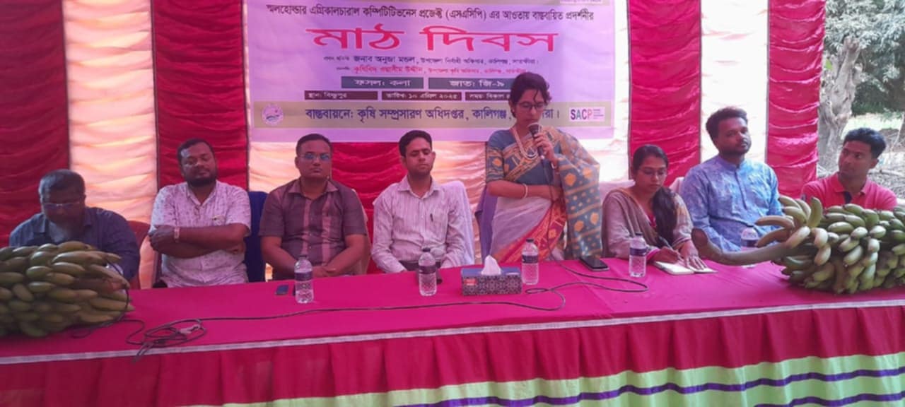 সাতক্ষীরার কালিগঞ্জে কৃষি সম্প্রসারণ অধিদপ্তরের উদ্যোগে স্নলহোল্ডার এগ্রিকালচারাল কম্পিটিটিভনেস প্রজেক্ট (এস এসিপি) এর আওতায় বাস্তবায়িত প্রদর্শনীর মাঠ দিবস অনুষ্ঠিত হয়েছে। বৃহস্পতিবার (১০ এপ্রিল) বিকাল ৪ টায় মুকুন্দমধু সূদন পুর গ্রামের আদর্শ কৃষক মাসুদুর রহমানের আঙিনায় বিষ্ণুপুর ইউপি’র চেয়ারম্যান জাহাঙ্গীর আলমের সভাপতিত্বে ও বিষ্ণুপুর ইউনিয়ন বিএনপির সাবেক সিনিঃ যুগ্ম আহবায়ক এম হাফিজুর রহমান শিমুল এর সঞ্চালনায় প্রধান অতিথির বক্তব্য রাখেন কালিগঞ্জ উপজেলা নিবার্হী কর্মকর্তা অনুজা মন্ডল।