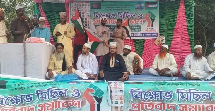 সবশেষে ফিলিস্তিনি বাসীদের জন্য দোয়া প্রার্থনা করে মোনাজাত পরিচালনা করেন আলহাজ্ব মাওলানা আব্দুল হাকিম।
