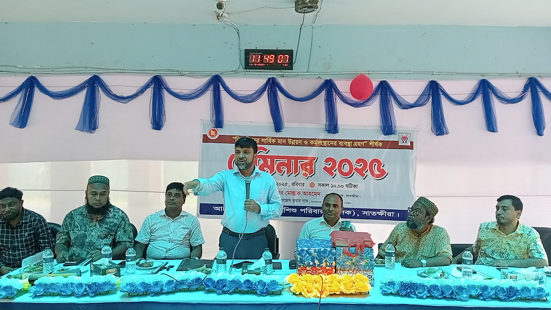 “নিবাসীদের সার্বিক মান উন্নয়ন ও কর্মসংস্থানের ব্যবস্থা গ্রহণ” শীর্ষক সেমিনার ২০২৫ অনুষ্ঠিত হয়েছে। রবিবার ( ১ জুন) সকাল ১০ টায় সরকারি শিশু পরিবারের হলরুমে সরকারি শিশু পরিবার বালক সাতক্ষীরার আয়োজনে এ সেমিনার অনুষ্ঠিত হয়। জেলা সমাজ সেবা কার্যালয়ের উপপরিচালক সন্তোষ কুমার নাথ’র সভাপতিত্বে প্রধান অতিথি হিসেবে বক্তব্য রাখেন, সাতক্ষীরা জেলা প্রশাসক মোস্তাক আহমেদ। সরকারি শিশু পরিবার বালক সাতক্ষীরার উপ তত্ত্বাবধায়ক মোছাঃ আয়েশা খাতুন এর সঞ্চালনায় সেমিনারে বক্তব্য রাখেন, জেলা শিক্ষা অফিসার আবু খায়ের, যুব উন্নয়ন অধিদপ্তর সাতক্ষীরার উপপরিচালক সঞ্জীব কুমার বিশ্বাস, জেলা সমাজসেবা কার্যালয়ের সহকারী পরিচালক রোকনুজ্জামান, সিভিল সার্জন কার্যালয়ের মেডিকেল অফিসার জয়ন্ত সরকার, সাতক্ষীরা সরকারি কলেজের প্রাক্তন অধ্যক্ষ লিয়াকত পারভেজ, কৃষি সম্প্রসারণ অধিদপ্তর খামার বাড়ী সাতক্ষীরার প্রকৌশলী হারুন অর রশিদ, শিশু একাডেমির লাইব্রেরীয়ান মো. রফিকুল ইসলাম। এসময় শিক্ষার্থীসহ বিভিন্ন শ্রেণী পেশার প্রতিনিধি অংশ নেয়।