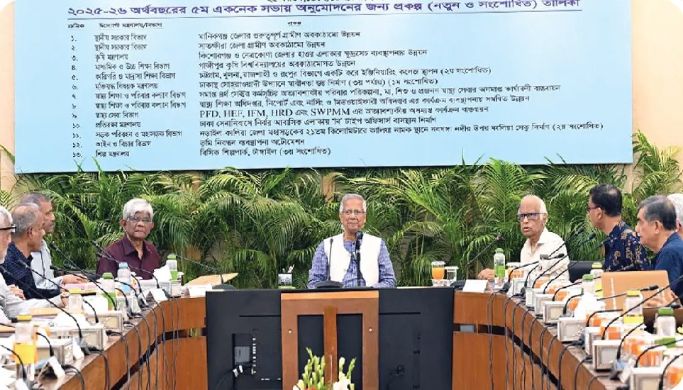 চলতি অর্থবছর (২০২৫-২৬)-এর পঞ্চম একনেক সভায় এই অনুমোদন দেওয়া হয়। আজ পরিকল্পনা কমিশন প্রাঙ্গণে এনইসি সম্মেলনকক্ষে অনুষ্ঠিত এ বৈঠকে সভাপতিত্ব করেন প্রধান উপদেষ্টা ও একনেক -এর চেয়ারপার্সন অধ্যাপক ড. মুহাম্মদ ইউনূস।