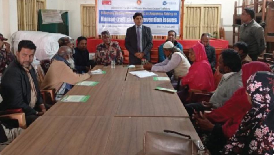 জেলা সিটি আইপি সদস্য সাফিরুল ইসলামের পরিচালনায় ইউপি চেয়ারম্যান আবু মোঃ মোস্তফা কামালের সভাপতিত্বে সভায় বিগত সভার রেজুলেশন পাঠ করেন কমিটির সদস্য সচিব ও ইউপি সচিব মনোতোষ কুমার সাধু। সভায় বক্তব্য রাখেন, বীর মুক্তিযোদ্ধা আবদুল জব্বার, সহকারী শিক্ষক নির্মল কুমার সরদার, ইউপি সদস্য খোকন মোল্ল্যা, নাসিমা বেগম, শরিফুল ইসলাম, উইনরক ইন্টারন্যাশনাল এর রিজিওন্যাল কোঅর্ডিনেটর মাহামুদুল হাসান, অগ্রগতির প্রজেক্ট ম্যানেজার শেখ মাহাবুব রহমান, রূপান্তরের প্রোগ্রাম অফিসার দিপ্তী রায় ও কমিউনিটি ফ্যাসিলিটেটর মাহাবুবুর রহমান আকন্দ। সভায় মানব পাচার প্রতিরোধ কমিটির উদ্যোগ এবং সারভাইভারদের সুরক্ষা ও সেবা প্রাপ্তির ক্ষেত্রে বাজেটের অর্থ ব্যয়ের বিষয়ে পরিকল্পনা ও সিদ্ধান্ত গ্রহন করা হয়।