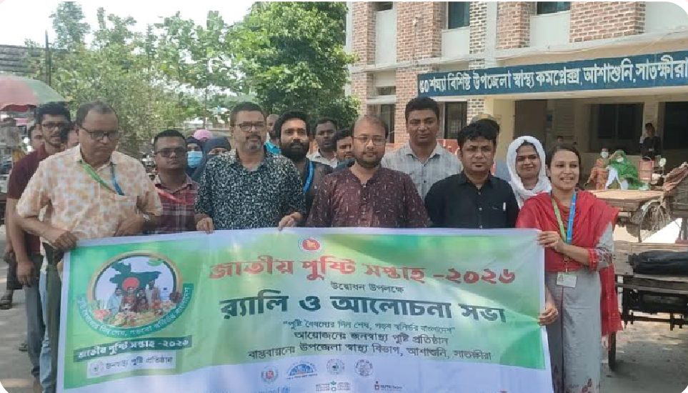 আশাশুনিতে জাতীয় পুষ্টি সপ্তাহ ২০২৬ উপলক্ষ্যে র্যালী ও আলোচনা সভা অনুষ্ঠিত হয়েছে। রবিবার সকাল ১০টায় উপজেলা স্বাস্থ্য কমপ্লেক্সের সম্মেলন কক্ষে জনস্বাস্থ্য পুষ্টি প্রতিষ্ঠান এর আয়োজনে ও উপজেলা স্বাস্থ্য বিভাগের বাস্তবায়নে কর্মসূচি পালন করা হয়।